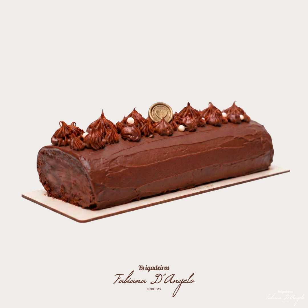 Massa preta recheio ganache de chocolate.